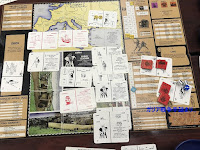 | 1戦目。ボードは地理的なものを表しているのではなく、 プレイの「場」とチャート。ボードの下に派閥がみえる |